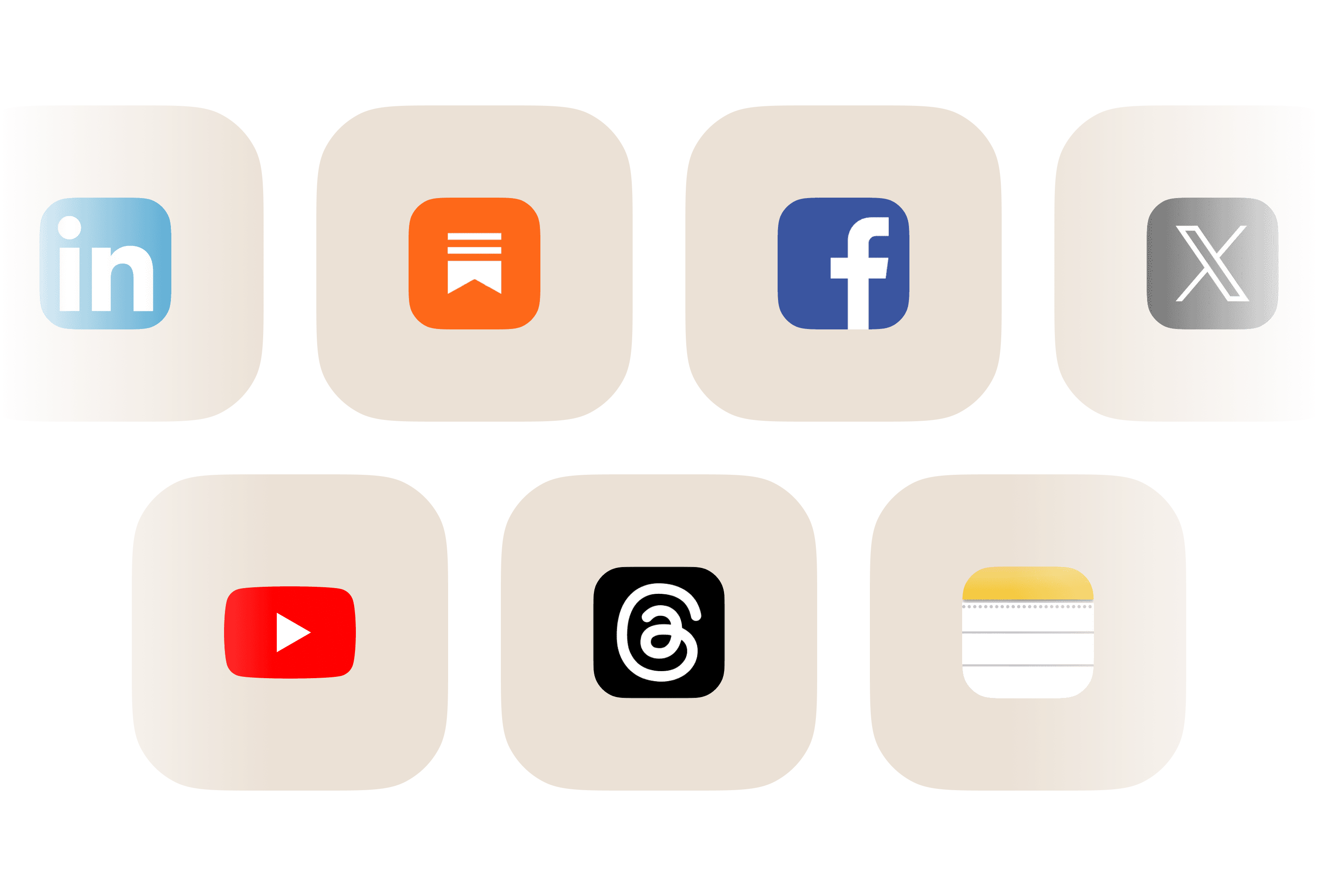 SNS 게시글, 유튜브, 블로그, PDF, 메모 등